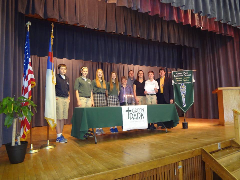 Congratulations to 7th grader, Joseph Huster!  Huster was inducted into the National Junior Honor Society April 15 after chapel.  He’s pictured here with his parents, Dave & Brenda, Pastor Derek Paetow, Mrs. Ann Ryherd and the GPLS NJHS executive board.