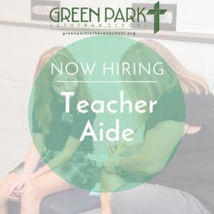 Green Park Lutheran School is seeking a caring and dependable Teacher Aide to support our elementary classrooms.